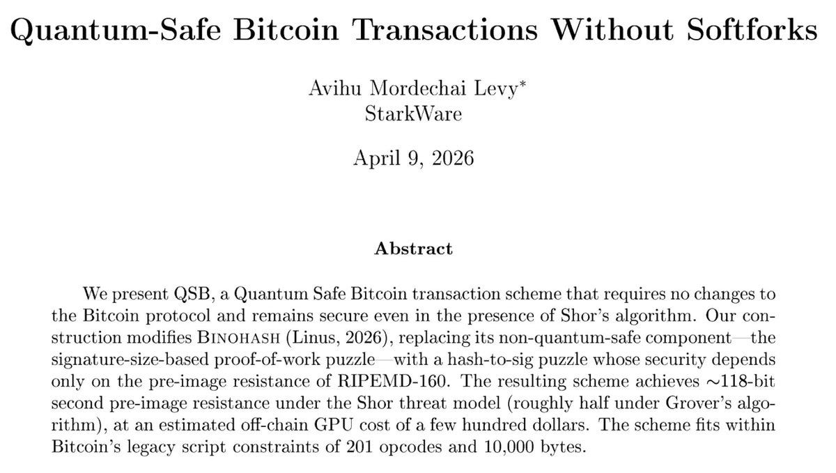 Just yesterday, Bitcoin developer Avihu Levy introduces "Quantum-Safe Bitcoin Transactions Without Softforks”