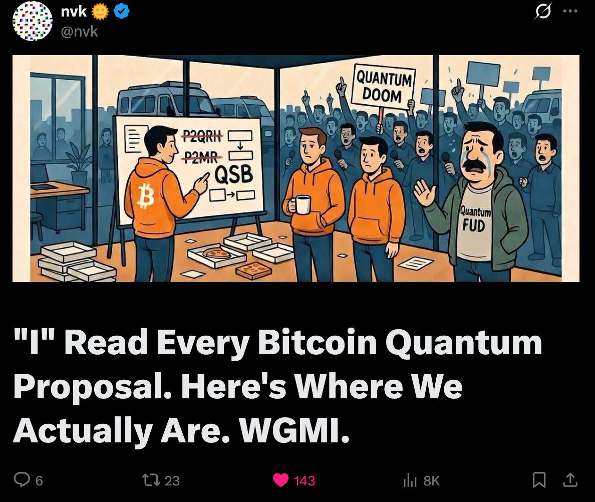 Bitcoin’s weakness is obvious. It is right there in front of you. Quantum is the final boss. It is real and it should be taken seriously. However, technical problems can be solved over time by smart people with strong incentives.