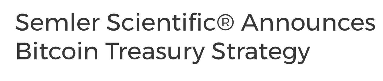 "Our bitcoin treasury strategy and purchase of bitcoin underscore our belief that bitcoin is a reliable store of value and a compelling investment," said Eric Semler, Semler Scientific's chairman. "Bitcoin is now a major asset class with more than $1 trillion of market value. We believe it has unique characteristics as a scarce and finite asset that can serve as a reasonable inflation hedge and safe haven amid global instability. We also believe its digital, architectural resilience makes it preferable to gold, which has a market value of approximately 10 times that of bitcoin. Given the gap in value between gold and bitcoin, we believe that bitcoin has the potential to generate outsize returns as it gains increasing acceptance as digital gold."