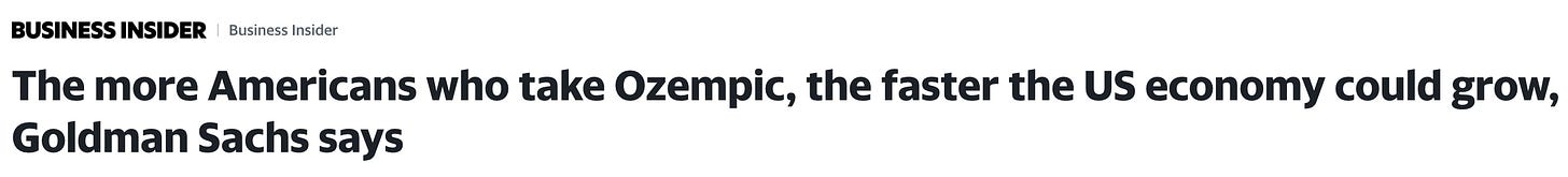 “The US GDP could grow by an extra 1% if 60 million Americans took GLP-1 drugs by 2028, Jan Hatzius, the chief economist at Goldman Sachs, wrote.”