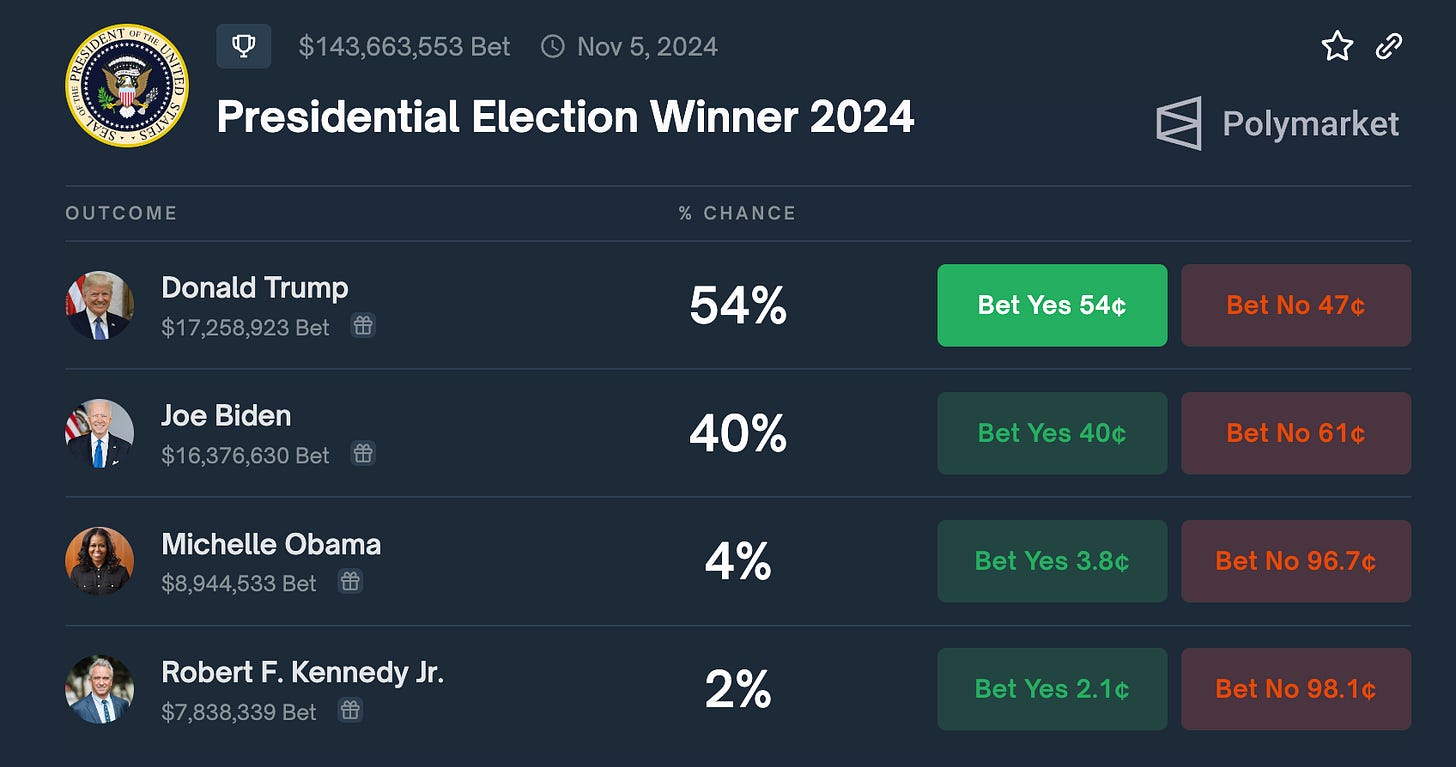 Trump’s donation page was down multiple times yesterday because of all the traffic. Folks that were on the fence and hoping Biden did something leading up to the election to make them feel better about voting for the Dems just put on their MAGA caps. Prediction markets are saying Trump 2024.
