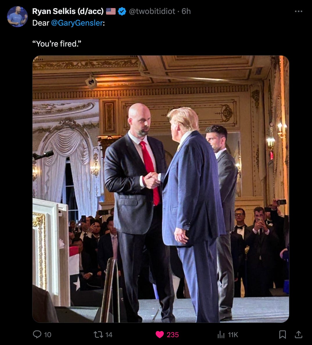 No, but it has been a pretty quiet week after last week’s fireworks stemming from the SEC’s ETF approvals and two big wins in congress for crypto. Many thought leaders in our space have beaten the drum that one day, crypto would be a focal point of a contentious US election, and it appears that this is the year.