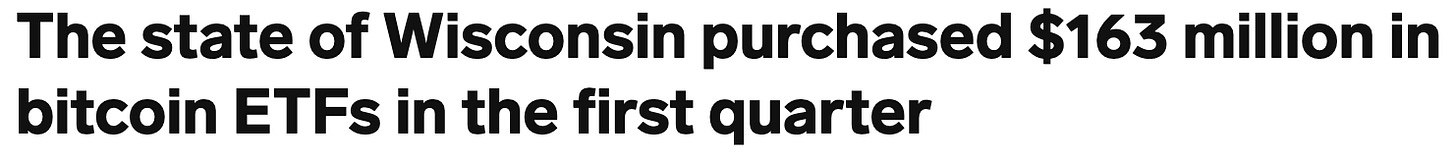 The state of Wisconsin has purchased about $163 million worth of bitcoin, according to 13F filings.