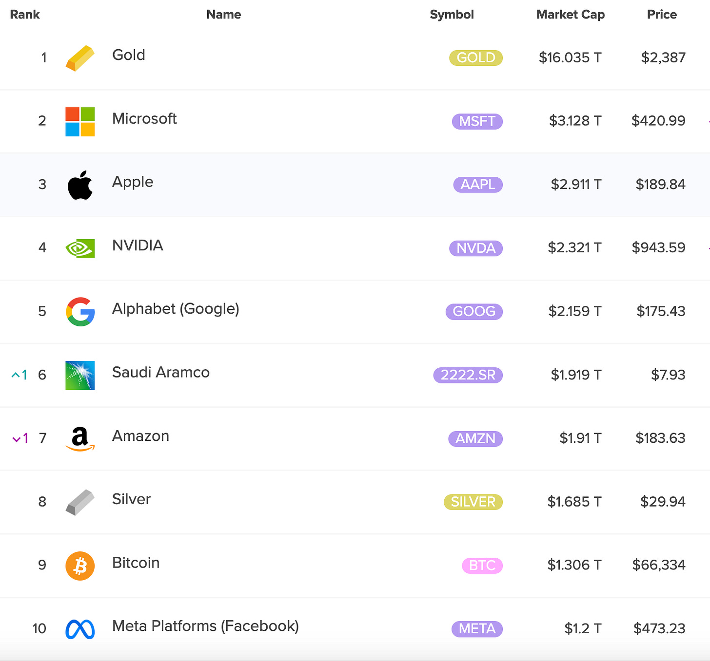 We’ve come a long way — to be ranked in the top 10 out of all assets is a tremendous feat. What’s your key takeaway? Mine’s actually not just the way gold absolutely dominates everything else by 5x+. When I look at this chart, I see commodities (and proxies — Saudi Aramco) and tech companies. The gap is so incredibly wide that it appears to be a fact that the only way an asset can hit $10 trillion is if it is some sort of scarce commodity. To take it a step further, gold’s market cap is largely due to its role as an investment vehicle or store of value. So, I think an asset needs to be some sort of scarce commodity that is also held by investors as a store of value. I’ve bashed gold in the past, but I can argue all day why I believe Bitcoin is better than gold at being an investment vehicle, store of value, payments technology, wealth preservation tool, etc. My bet is that Bitcoin will continue to creep up on gold and slowly steal market share. For those that have modest Bitcoin price targets, you’re not thinking big enough. Bitcoin will continue to climb up this list until it’s neck-and-neck with gold, and I think it will happen in short order.