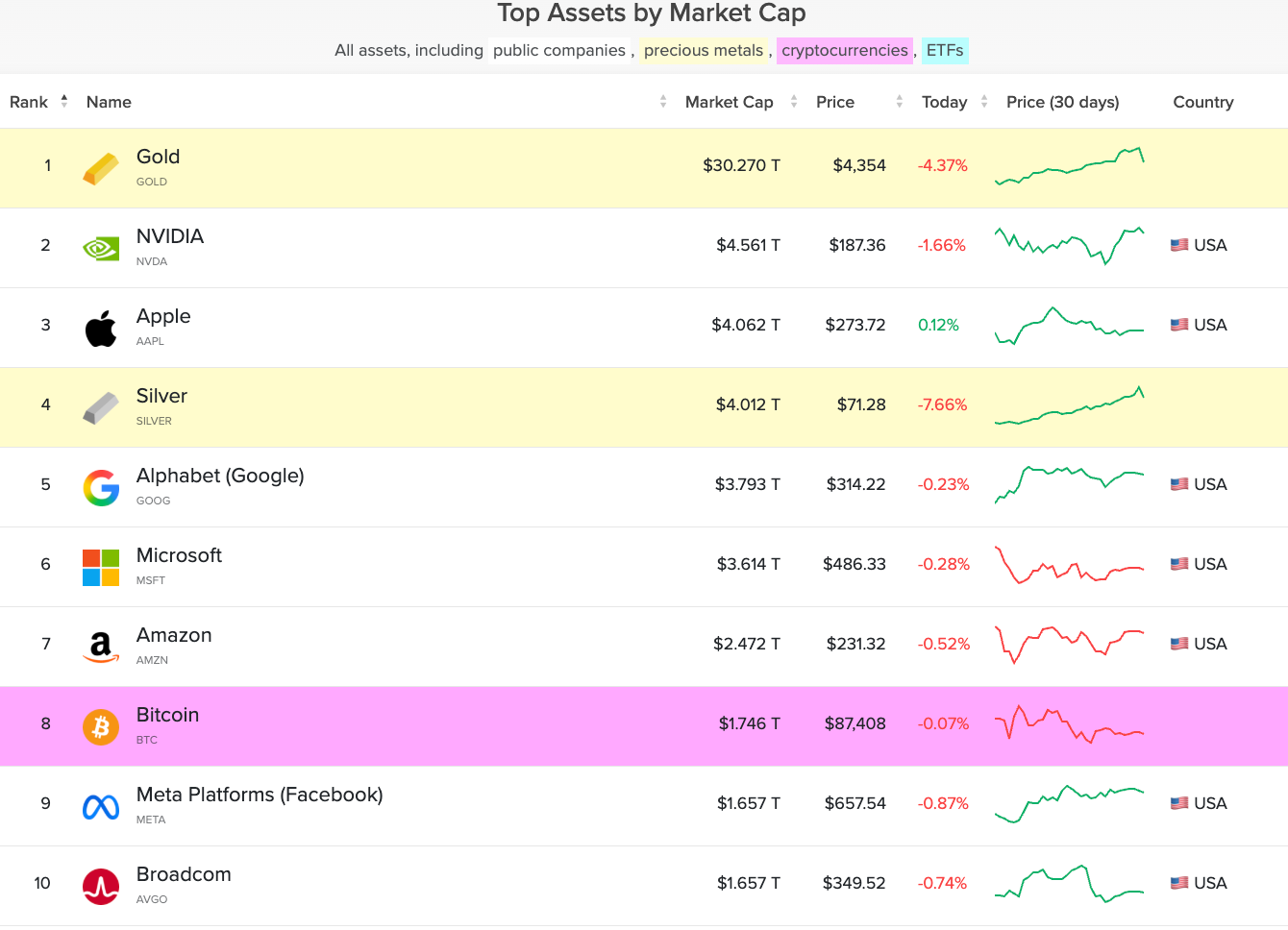 The surge in precious metals this year underscores the same trend. Gold and silver don’t rip higher in a vacuum, especially on the way down in rates. It signals capital seeking scarcity and credibility as Treasuries quietly lose appeal.