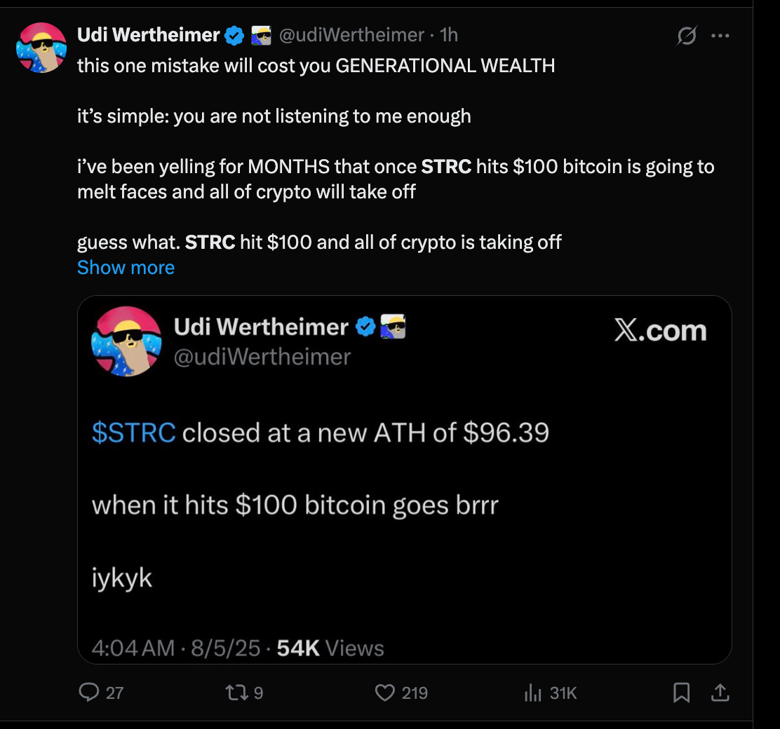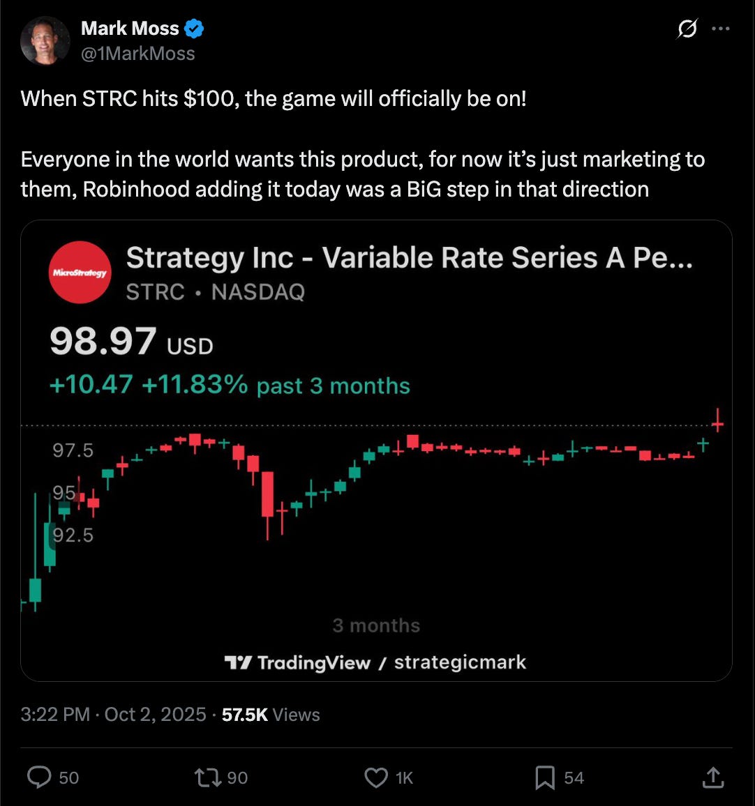 A few notables on X are screaming about this thing called STRC 0.00%↑ which apparently, it’s the reason bitcoin is about to “go to the moon, bro.” STRC is a new product from Michael Saylor’s company Strategy (formerly MicroStrategy). You might’ve seen the tweets: “when STRC hits $100, Bitcoin goes brrr.” It was kind of the meme of the week for those in the corners of X, but underneath the hype, there’s something worth understanding.
