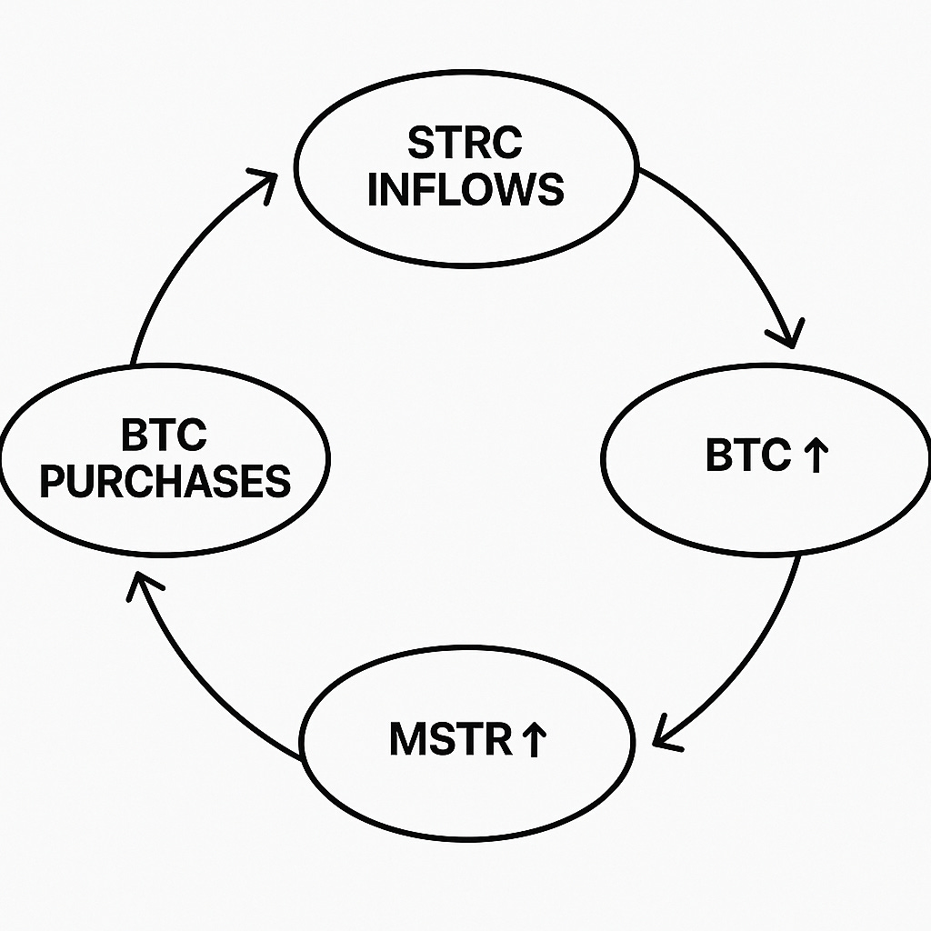 The “flywheel” narrative that’s spreading across X goes something like this: people buy STRC → Strategy raises new capital → Saylor uses it to buy more Bitcoin → Bitcoin’s price goes up → everyone feels richer and buys more STRC → repeat.