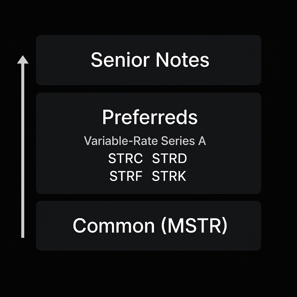 To really understand how this fits into Saylor’s structure, here’s where STRC sits in Strategy’s capital stack.