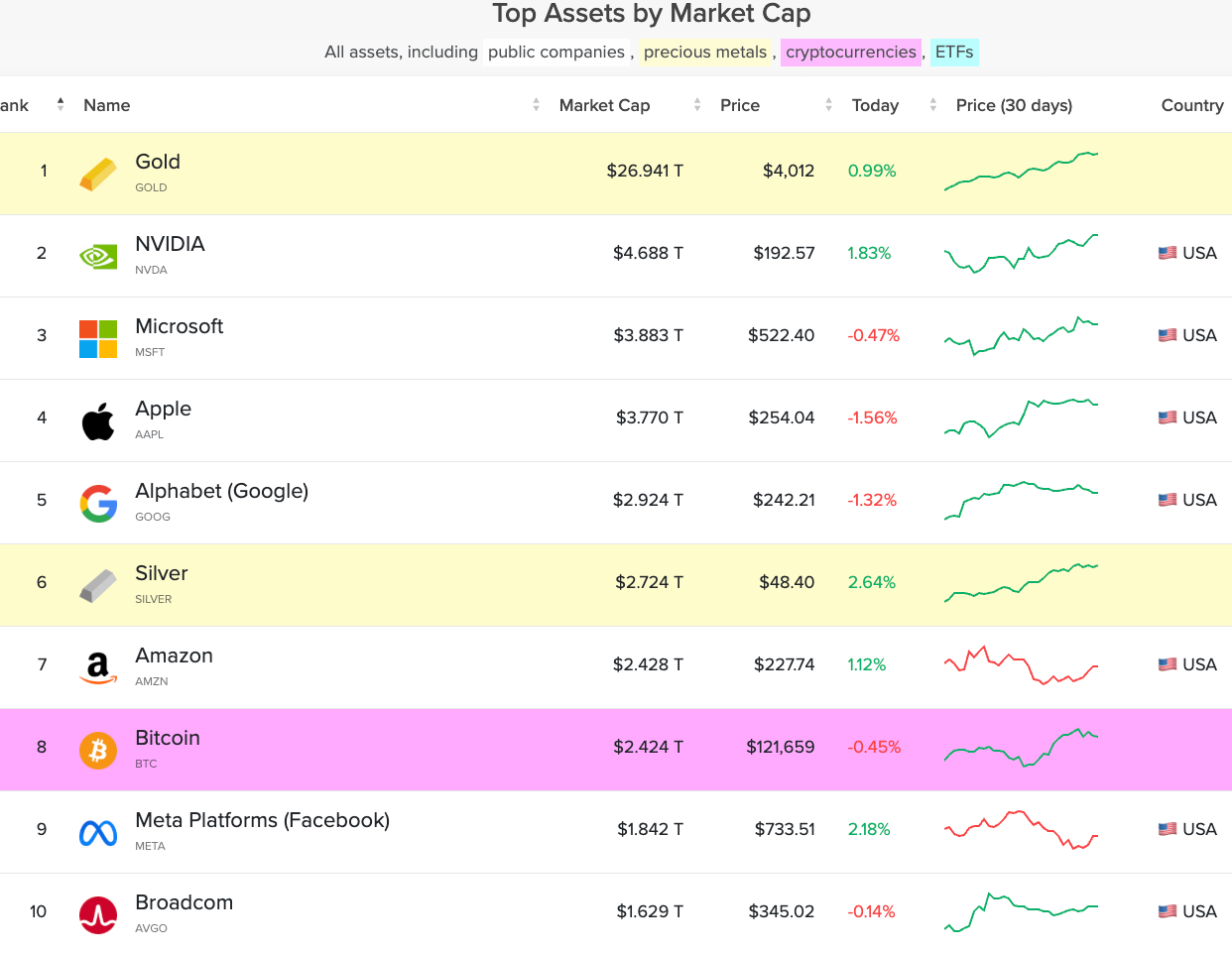 Last time I posted this chart, gold’s market cap was around $24T. It’s added trillions in just a few months and is up 50% YTD. Bitcoin’s sitting at $2.4T and climbing.