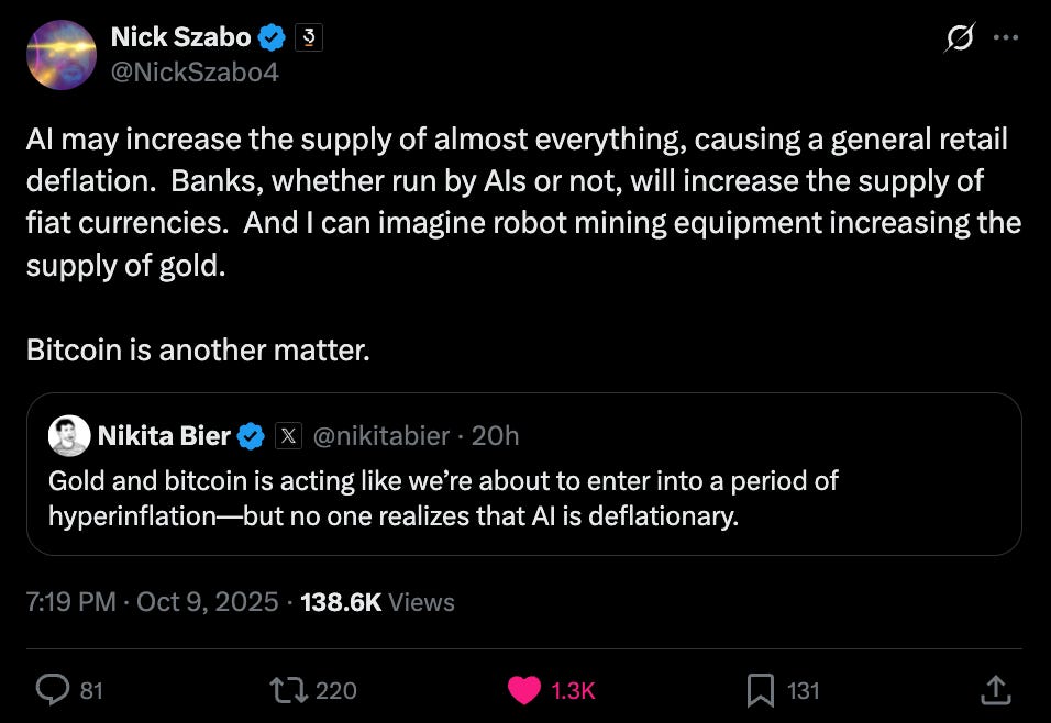Nice to see crypto pioneer Nick Szabo back online — perfectly timed.