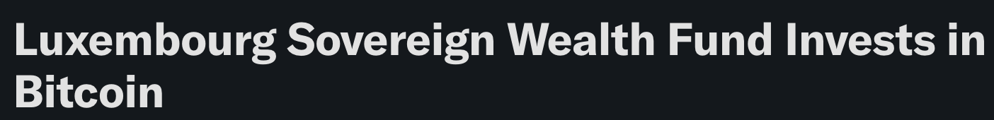 While not the biggest ticket, this week Luxembourg invested 1% of their sovereign wealth fund into bitcoin ETFs (click the headline to read the article).
