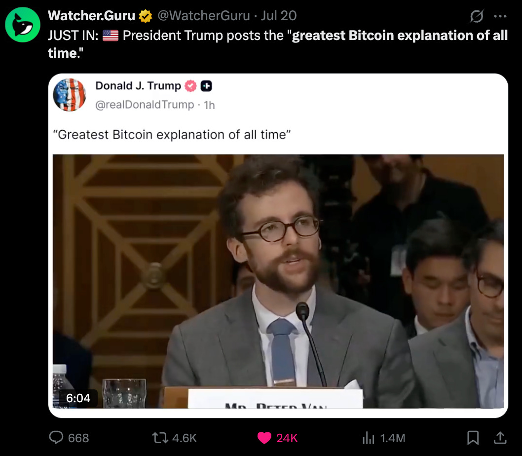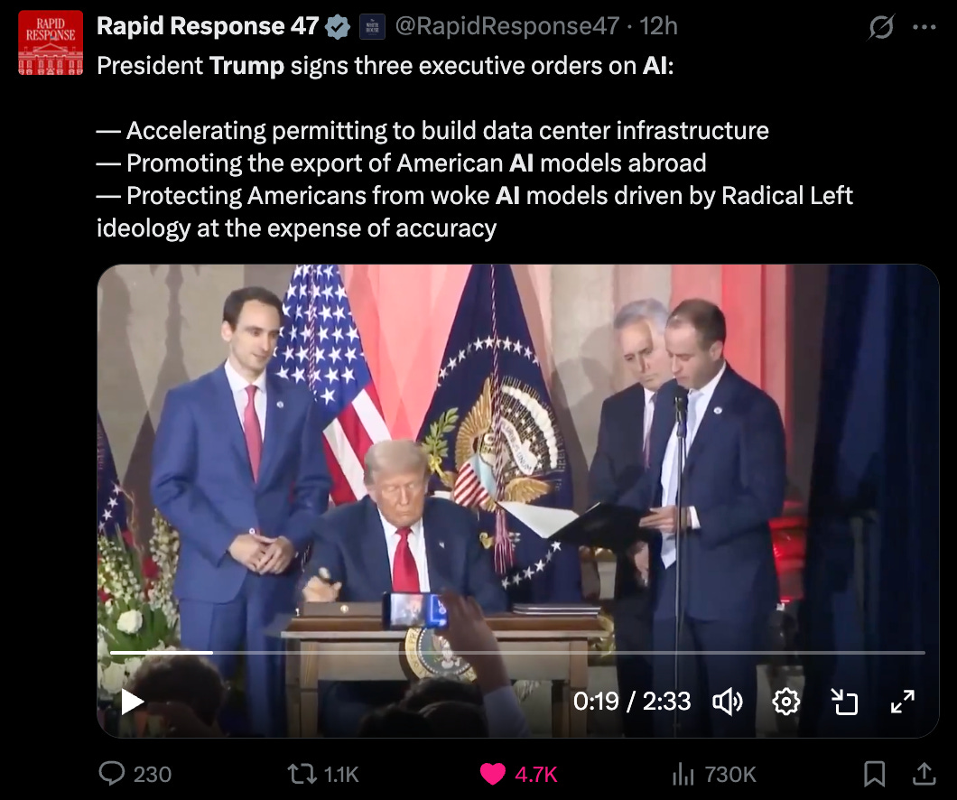 So, last week was “Crypto Week” and our industry got everything we could’ve hoped for. This week, the AI gigabrains in SF got their commitment that the USG is on their side and will do everything they can to make sure the US wins the race to general intelligence.